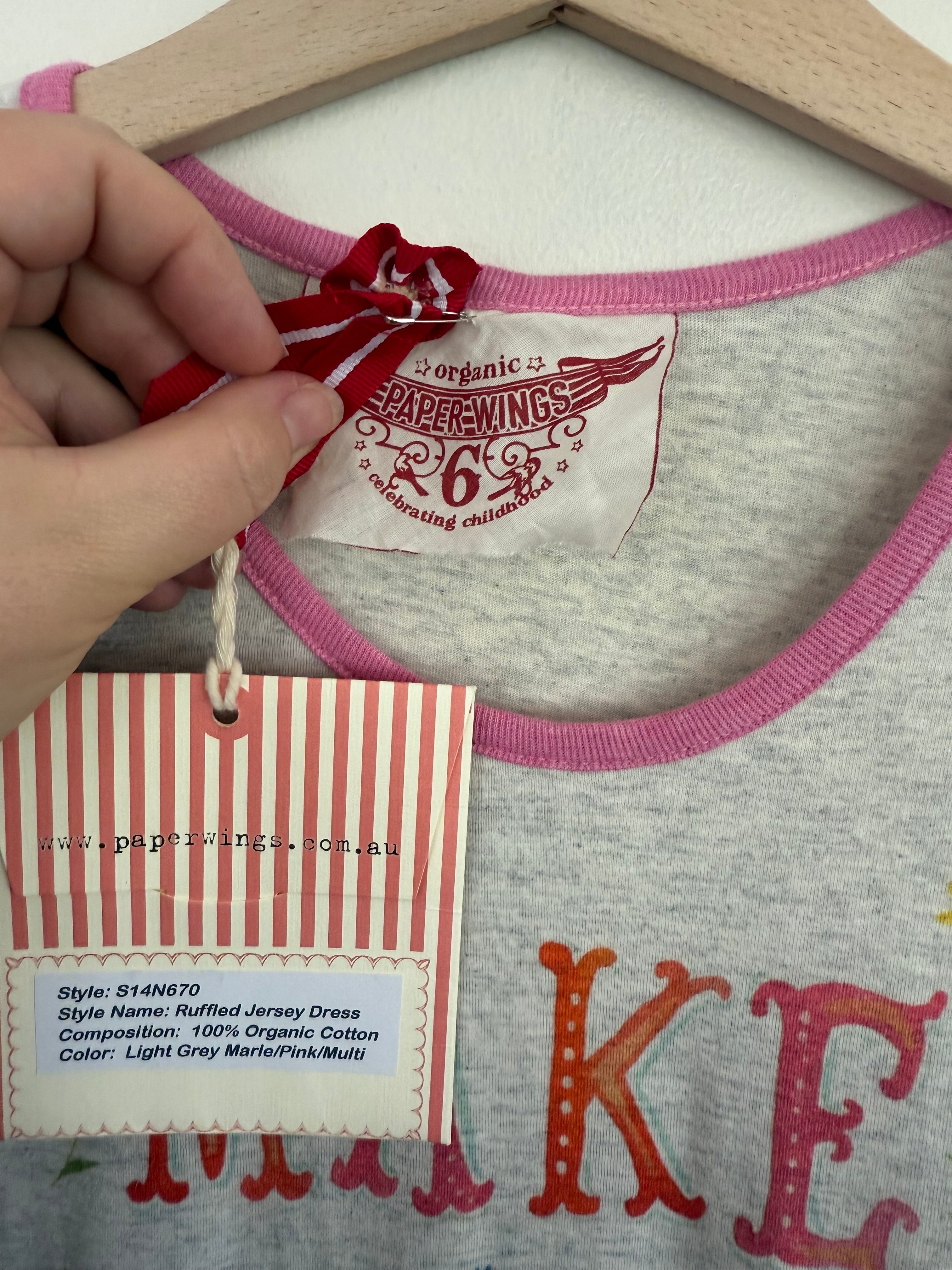 Paper Wings ruffled jersey dress Sz 6 NWT - Make a Wish print