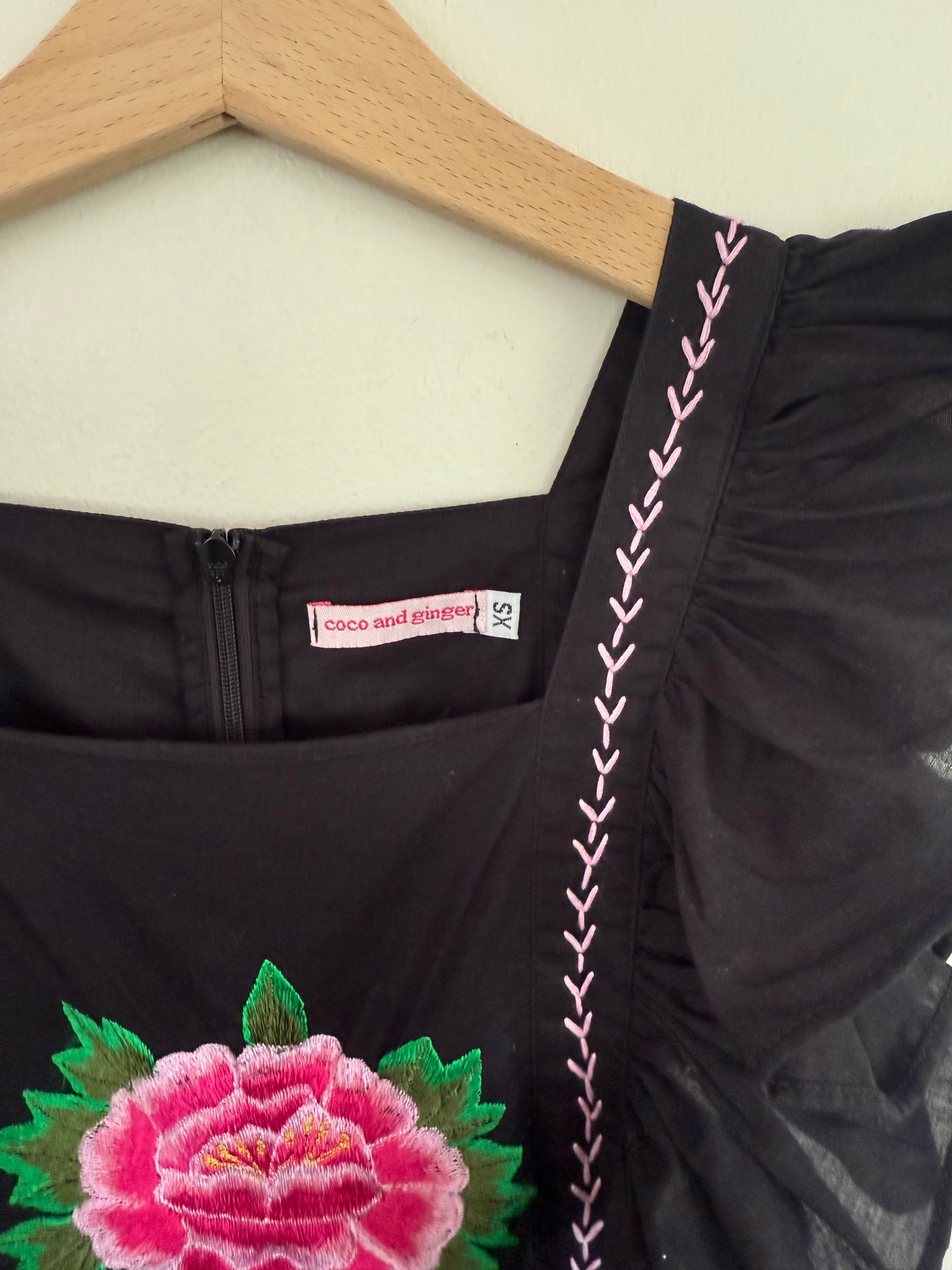 Coco & Ginger black embroidered jumpsuit Sz XS (approx 12 girls) NWOT