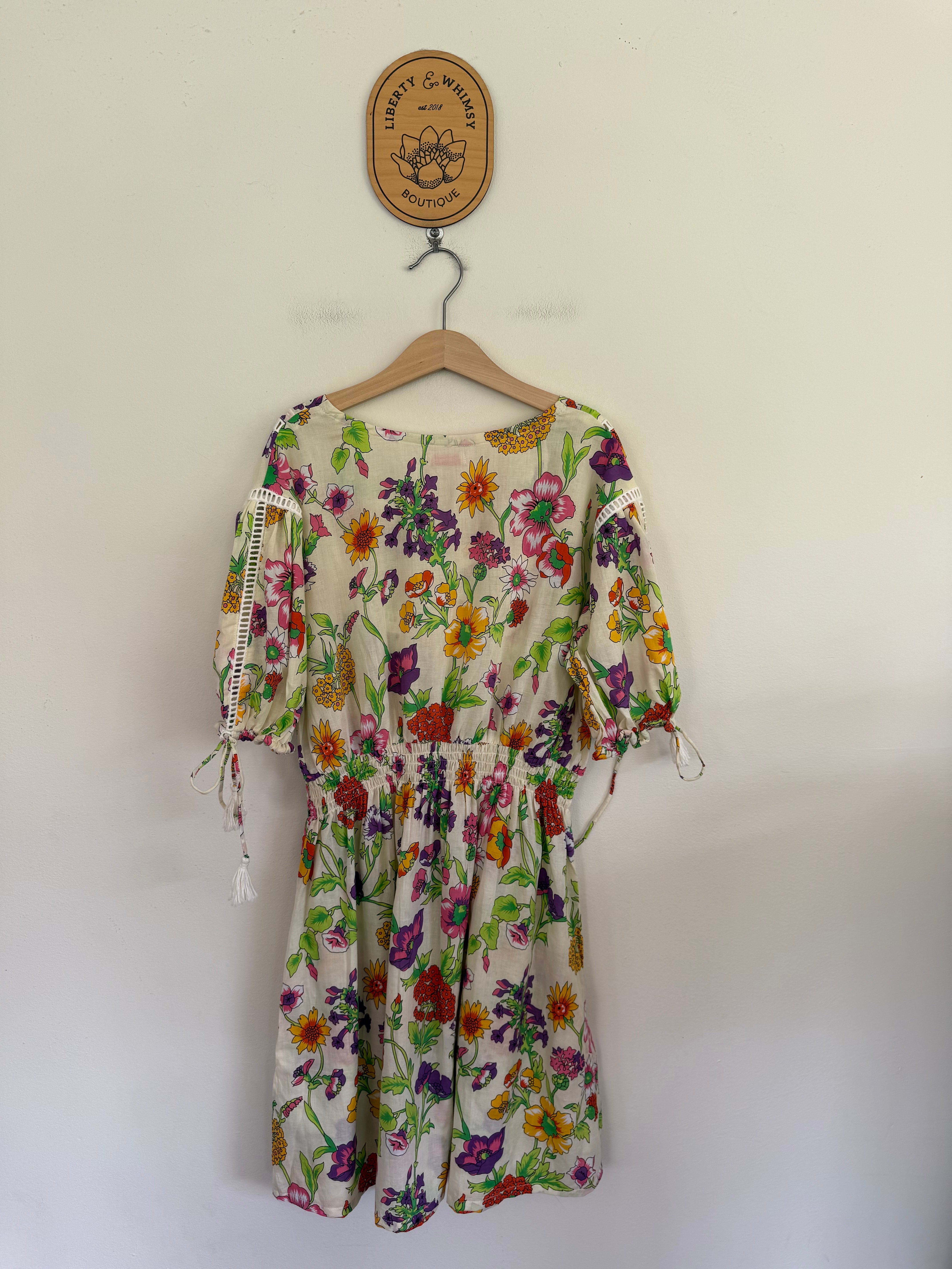 Coco & Ginger floral tie sleeve dress Sz XS (approx 12 girls) NWT