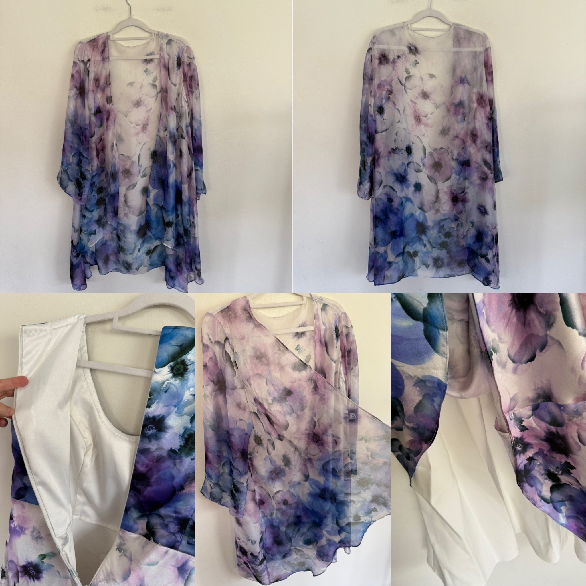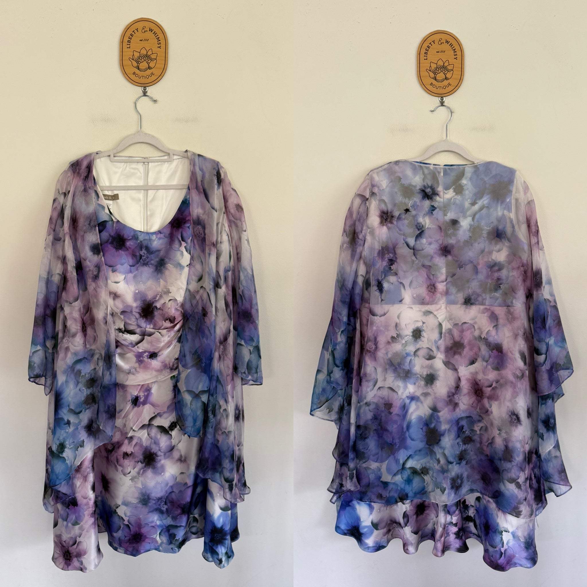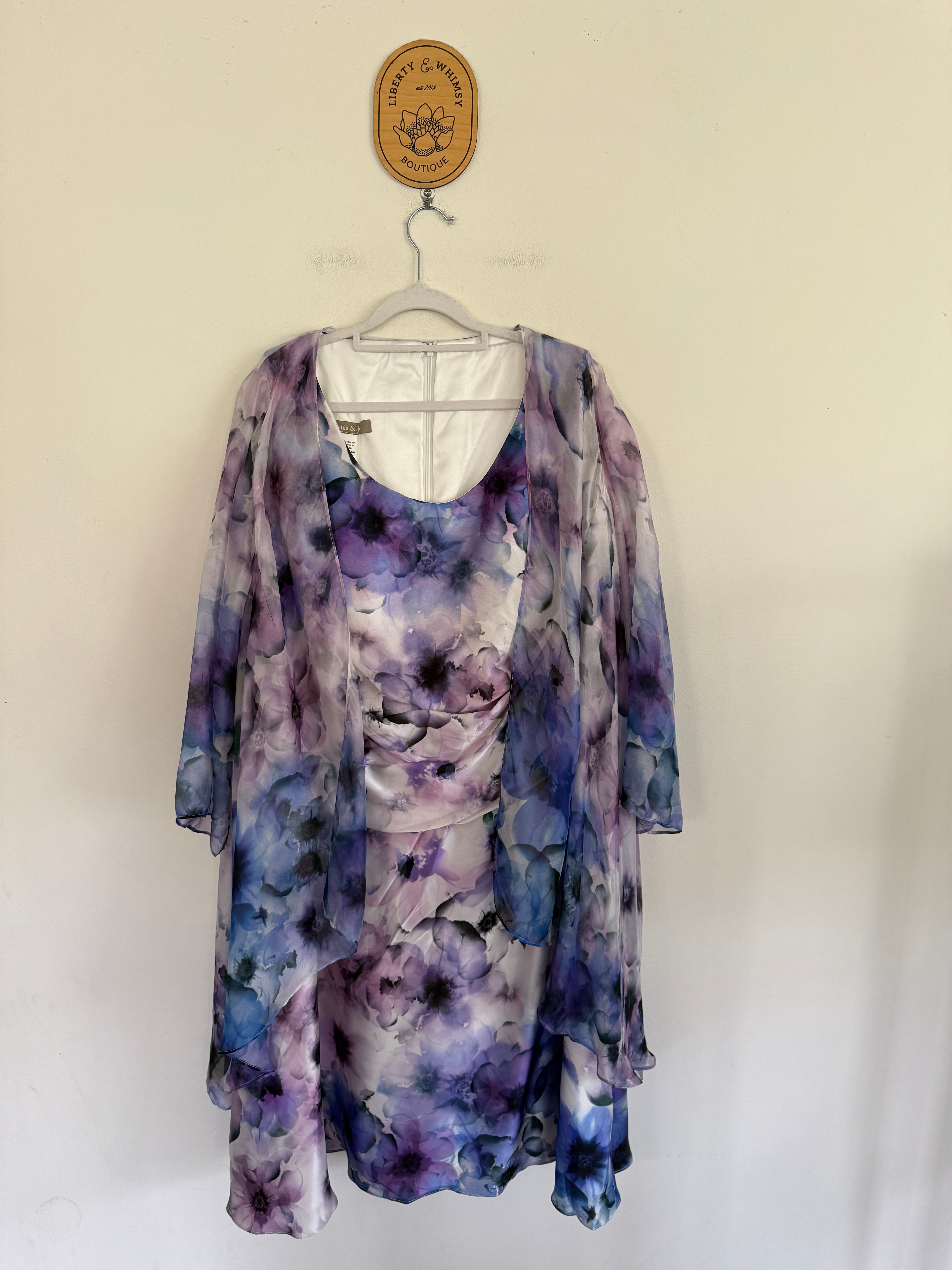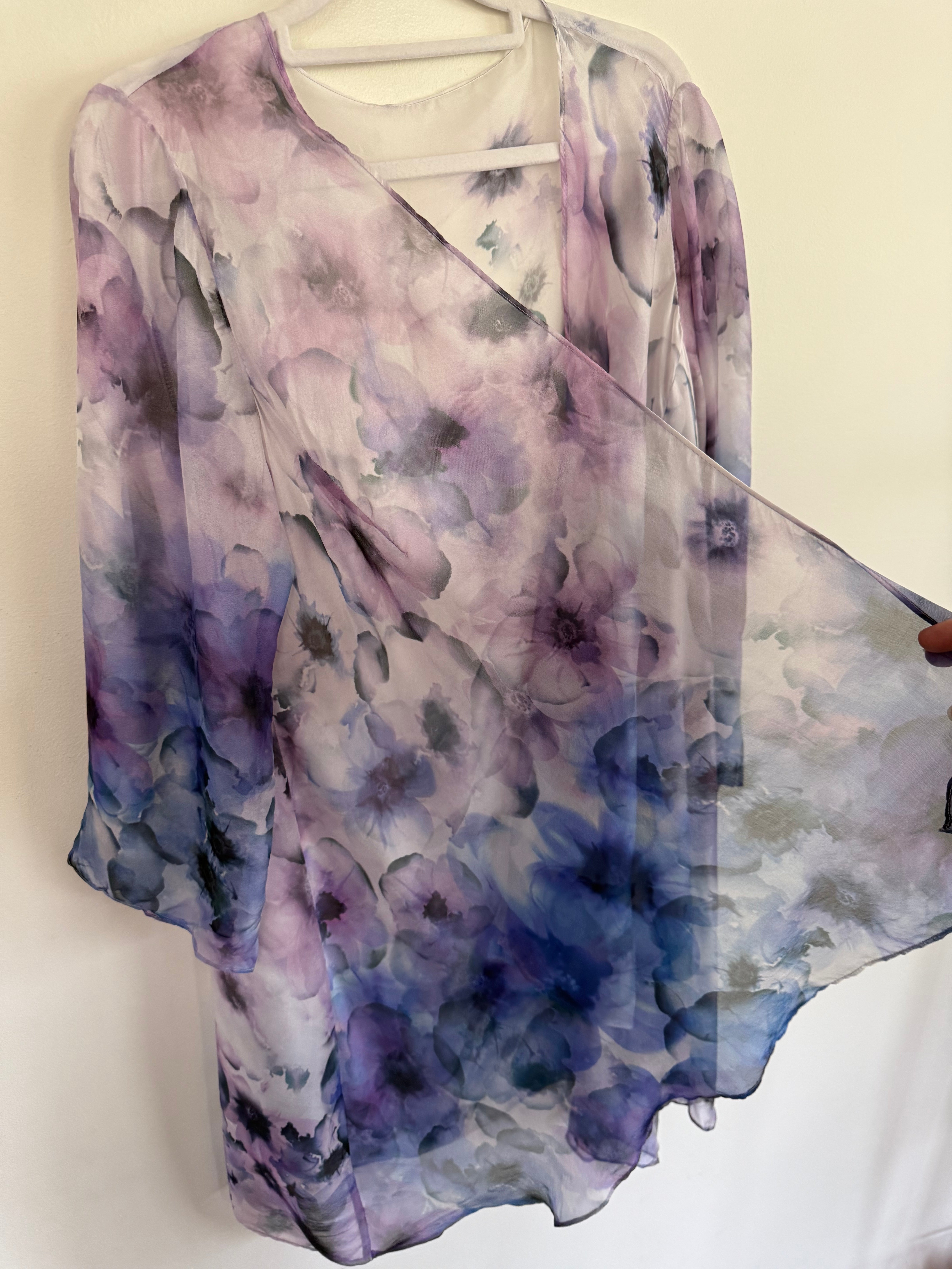 Paula & Jo handmade floral silk dress & shawl set Sz 14-16 NWOT