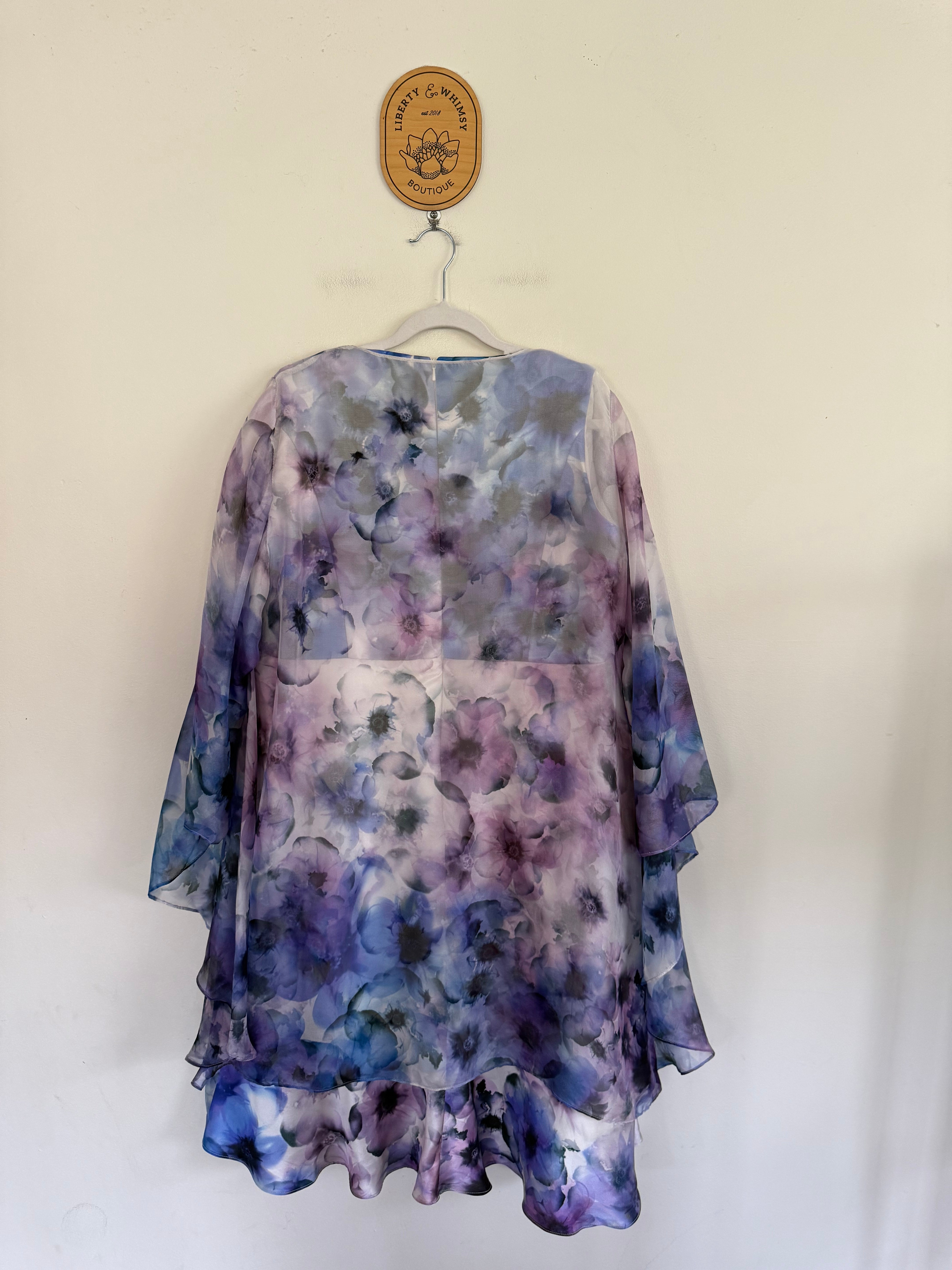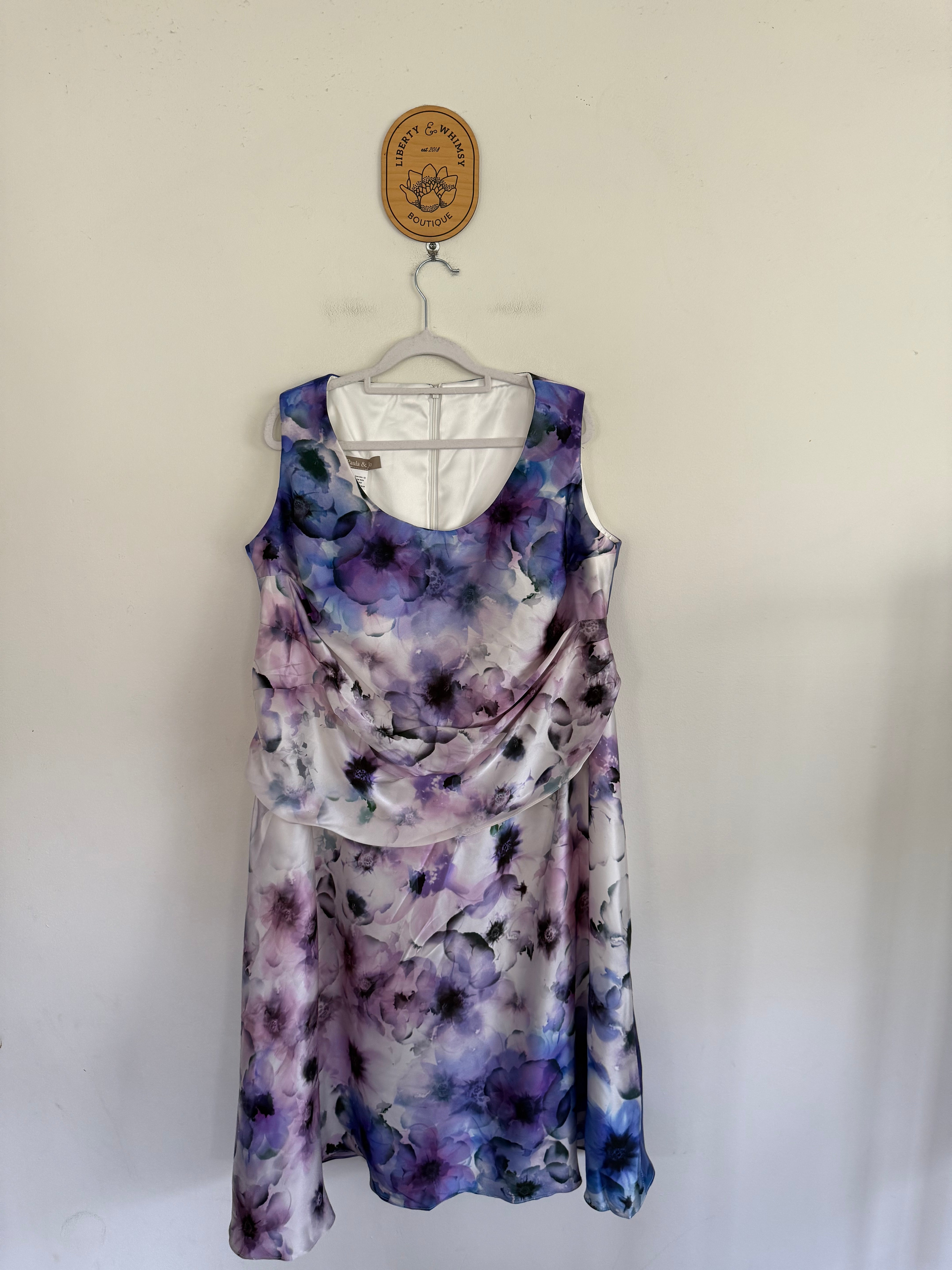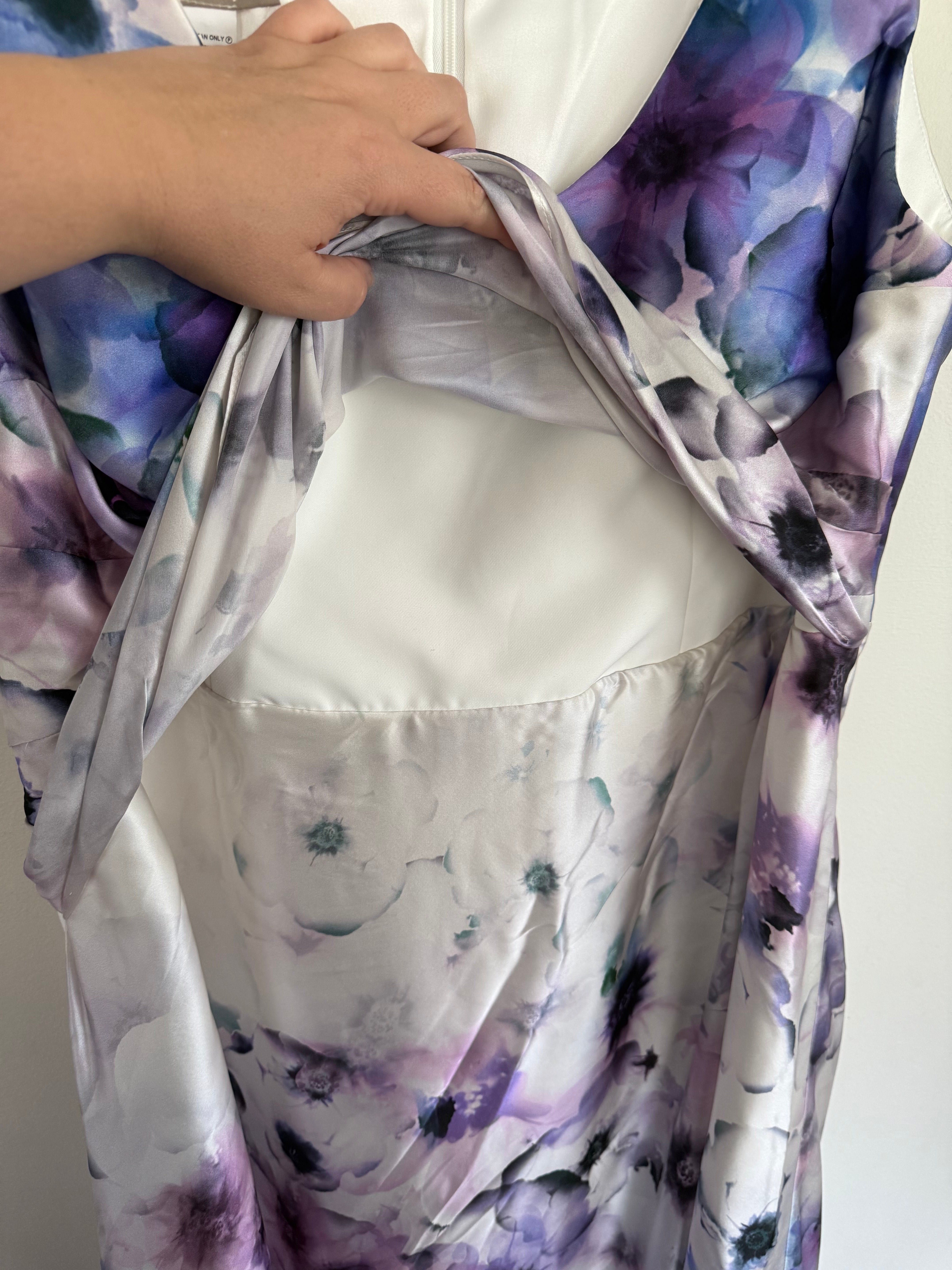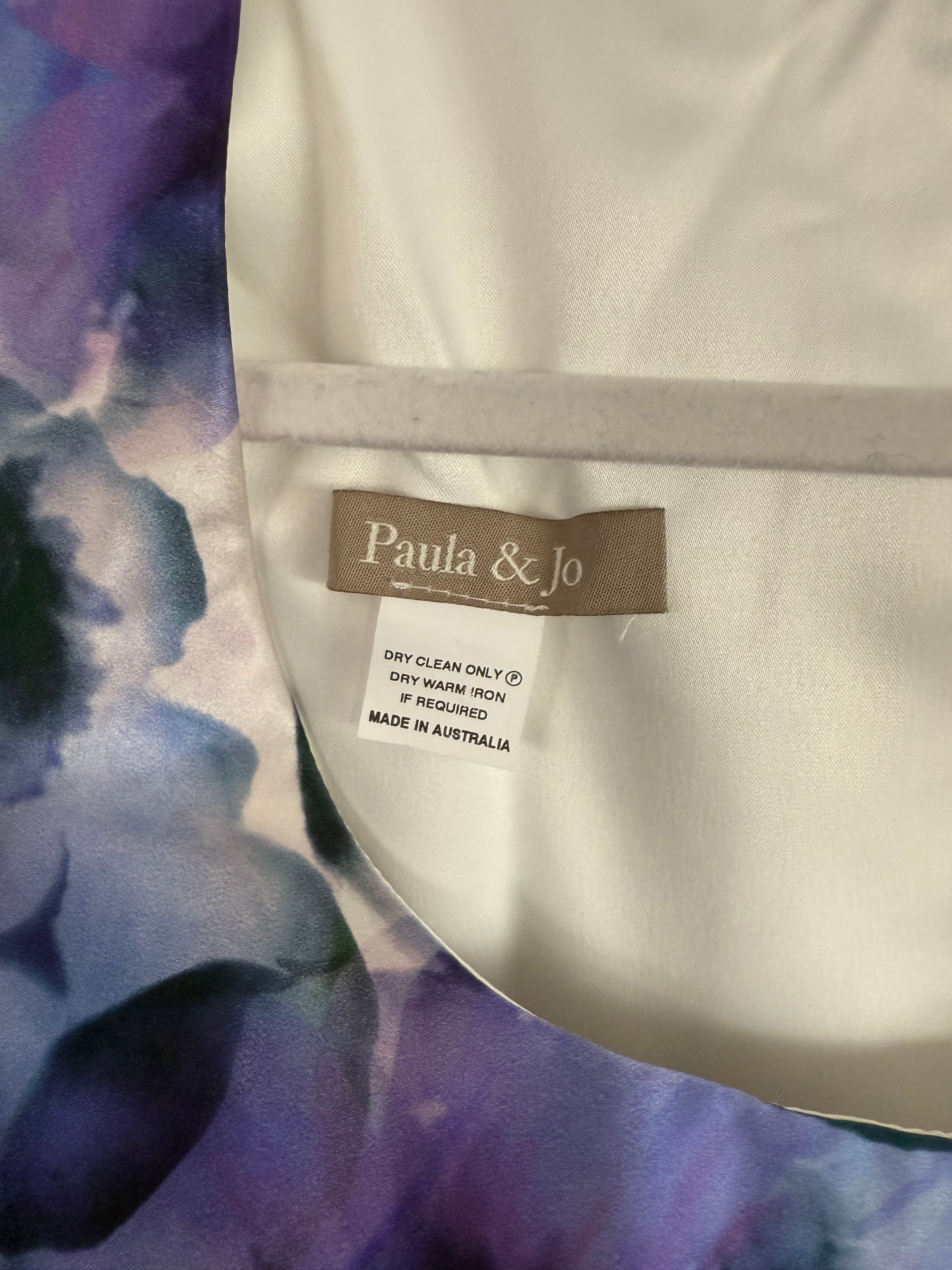Paula & Jo handmade floral silk dress & shawl set Sz 14-16 NWOT