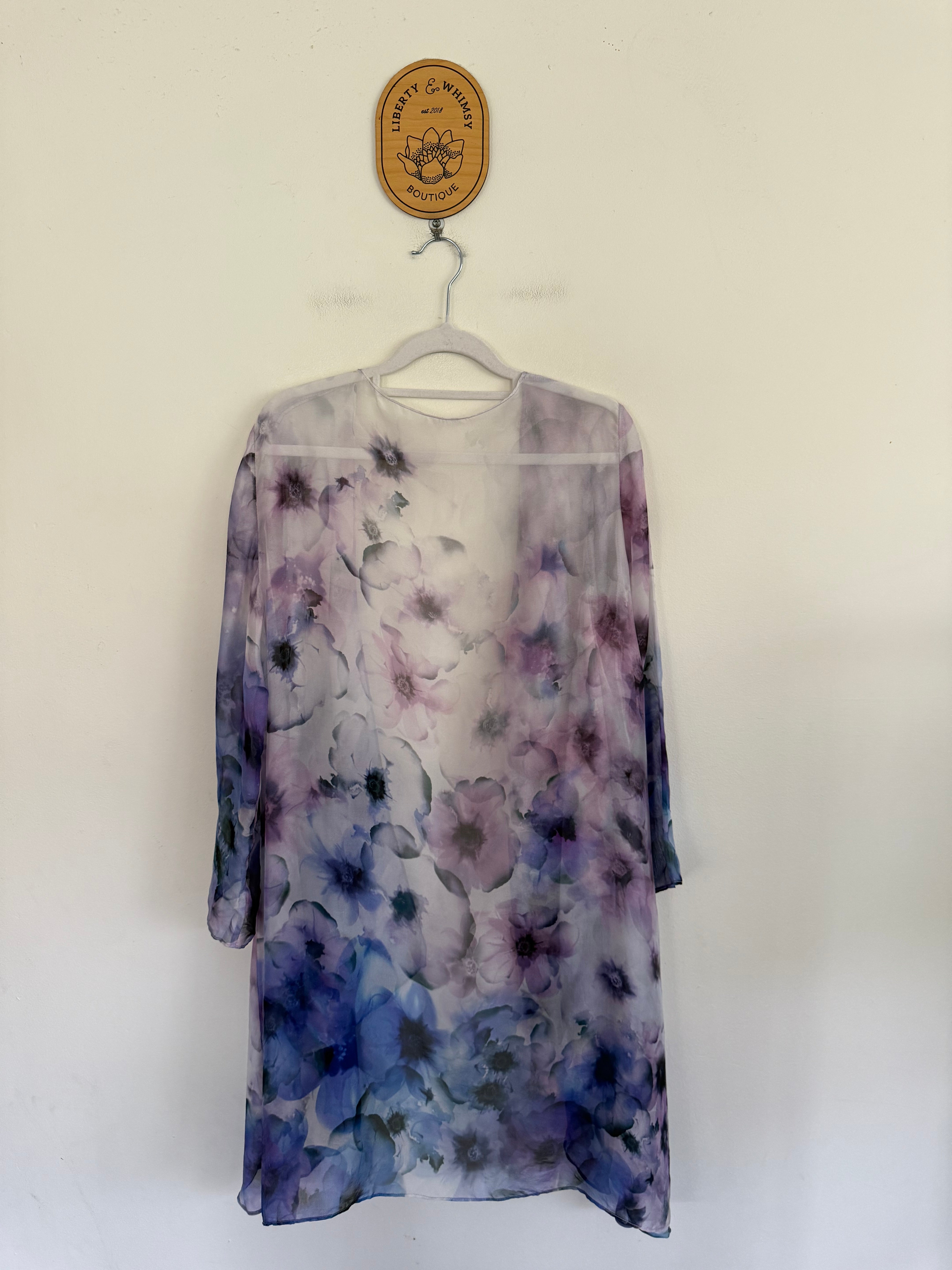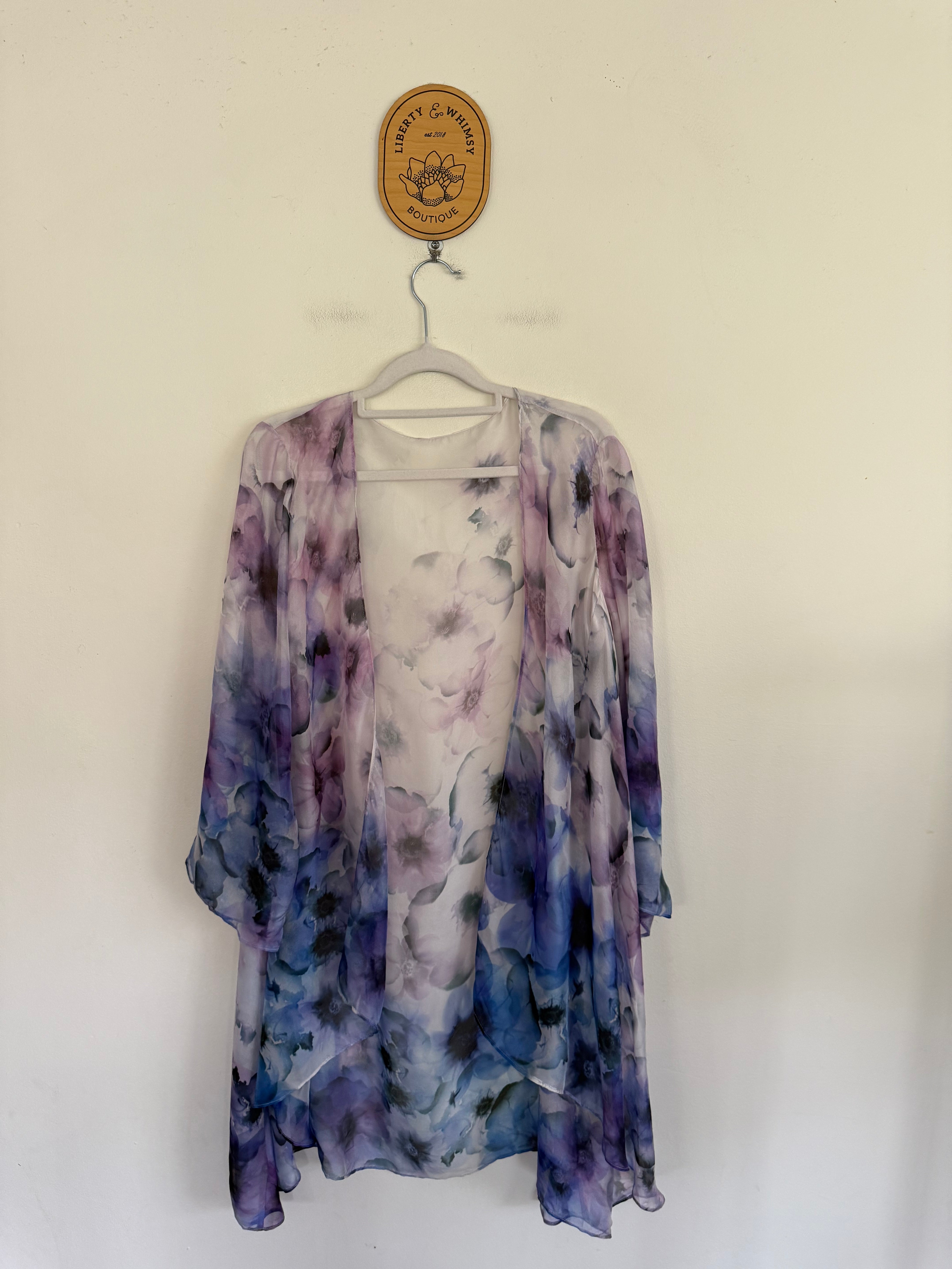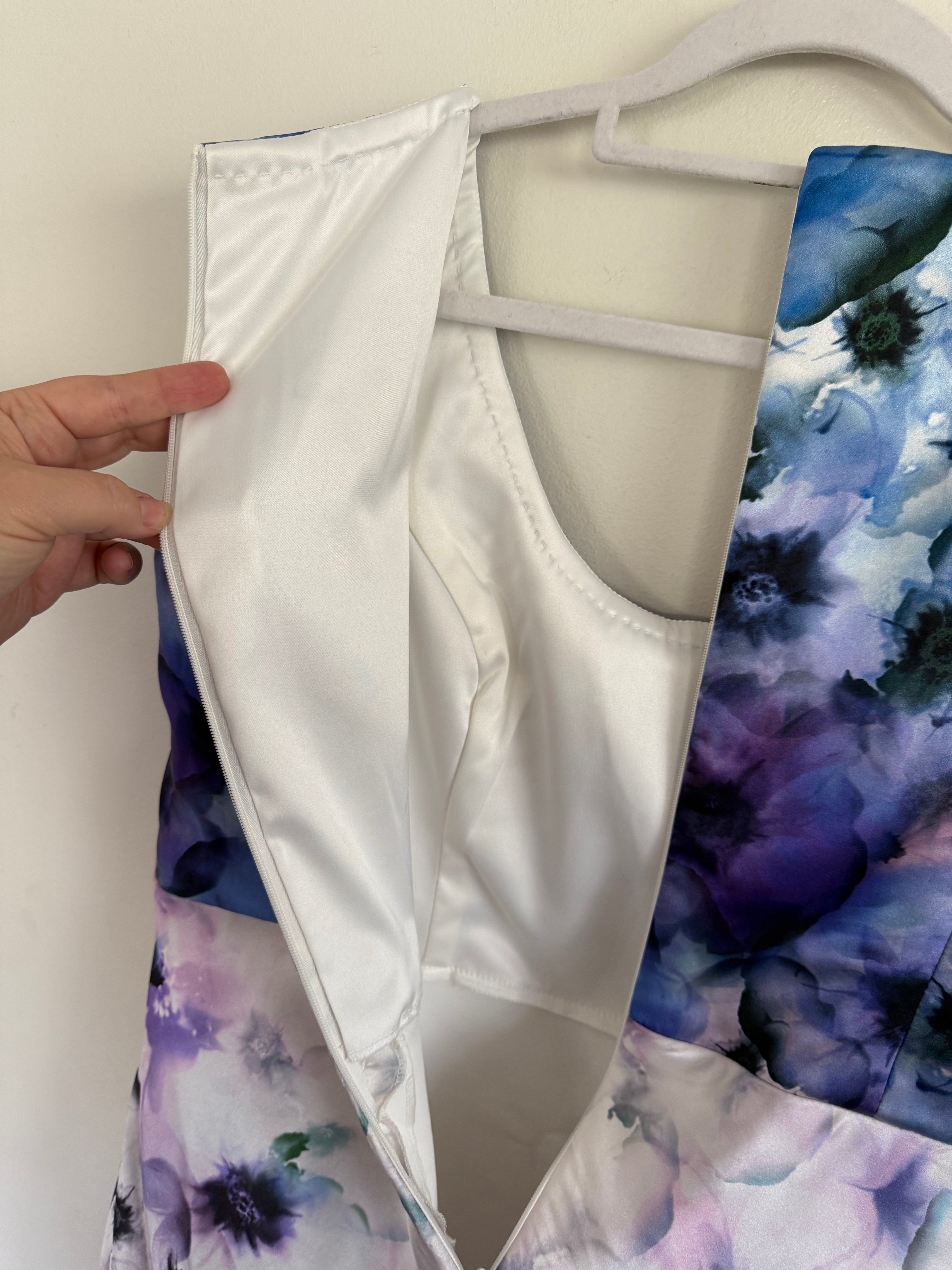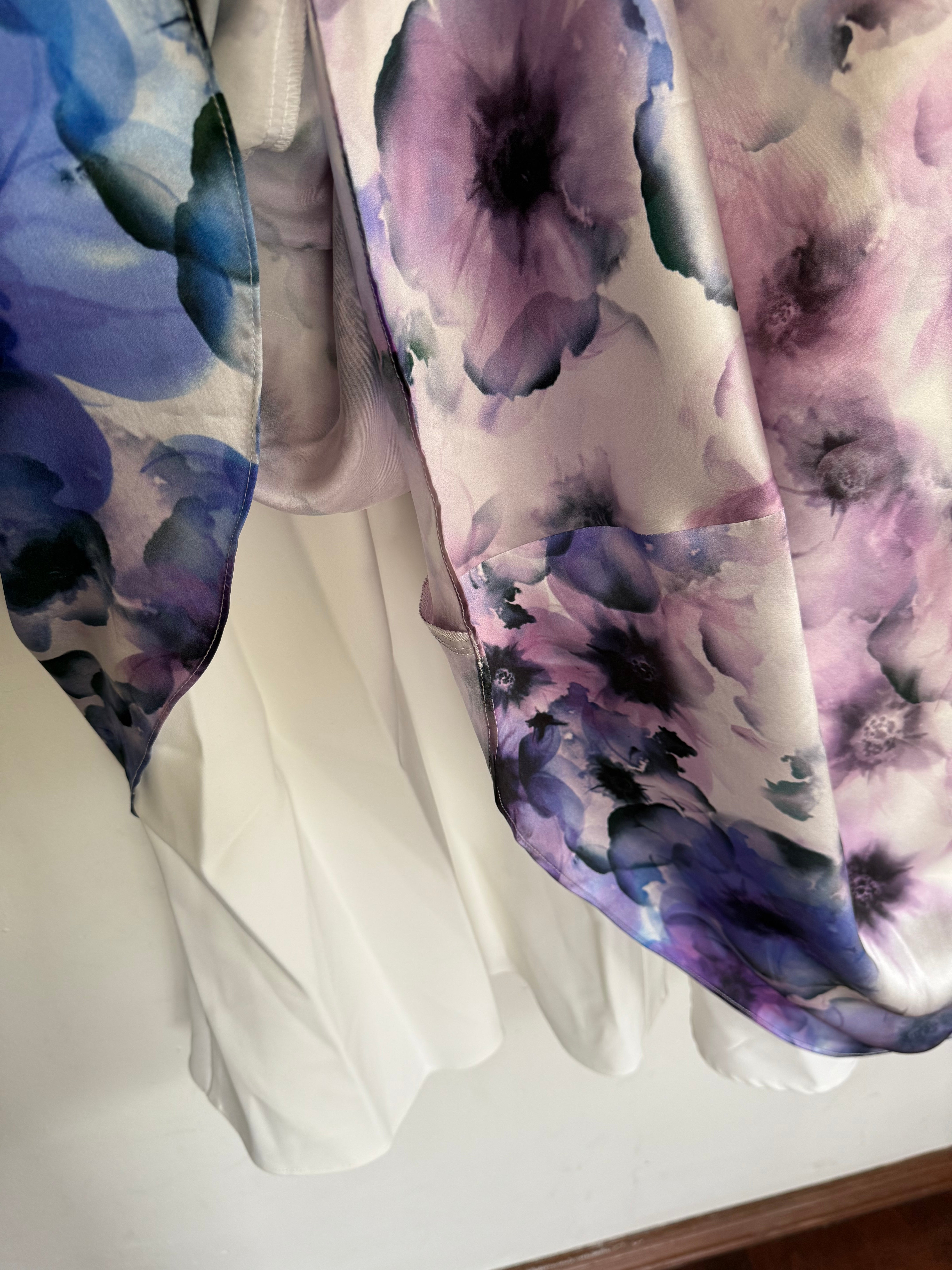 Paula & Jo handmade floral silk dress & shawl set Sz 14-16 NWOT