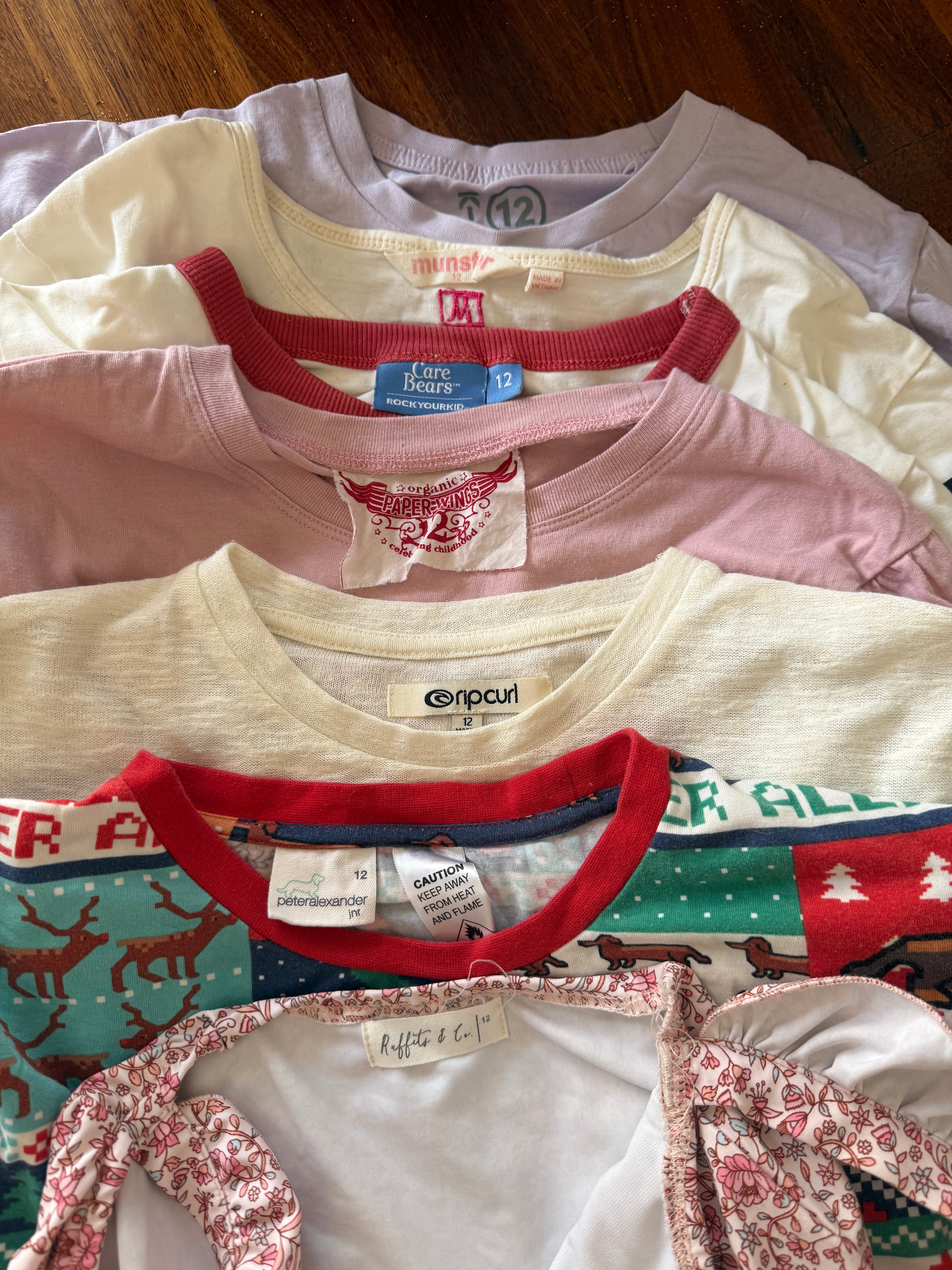 16pc sizes 12 and 13 girls play clothes bundle - Paper Wings, RYK, Munster, Rip Curl, Ruffets & Co, Peter Alexander, Seed, Zara, Tommy Hilfiger