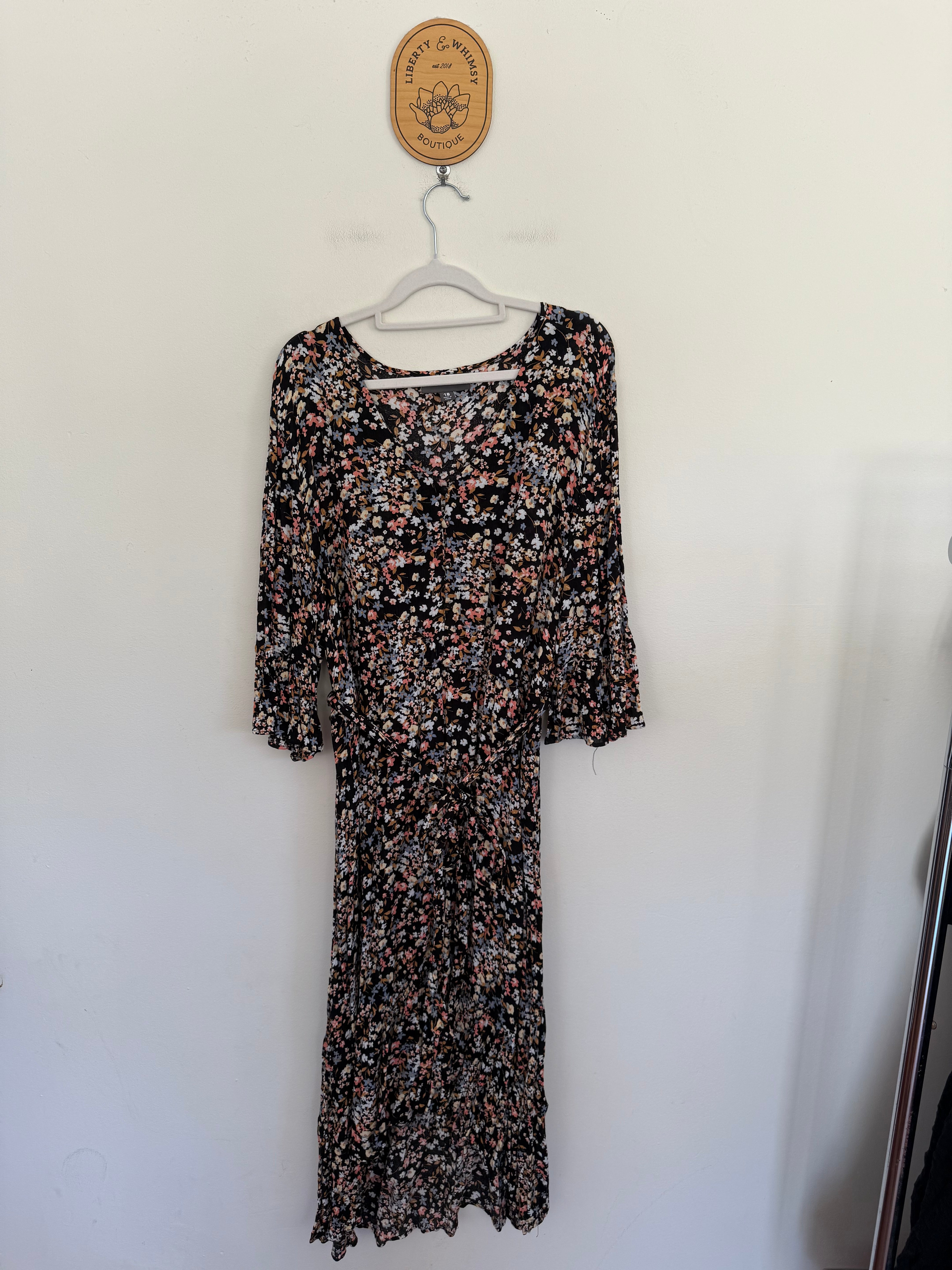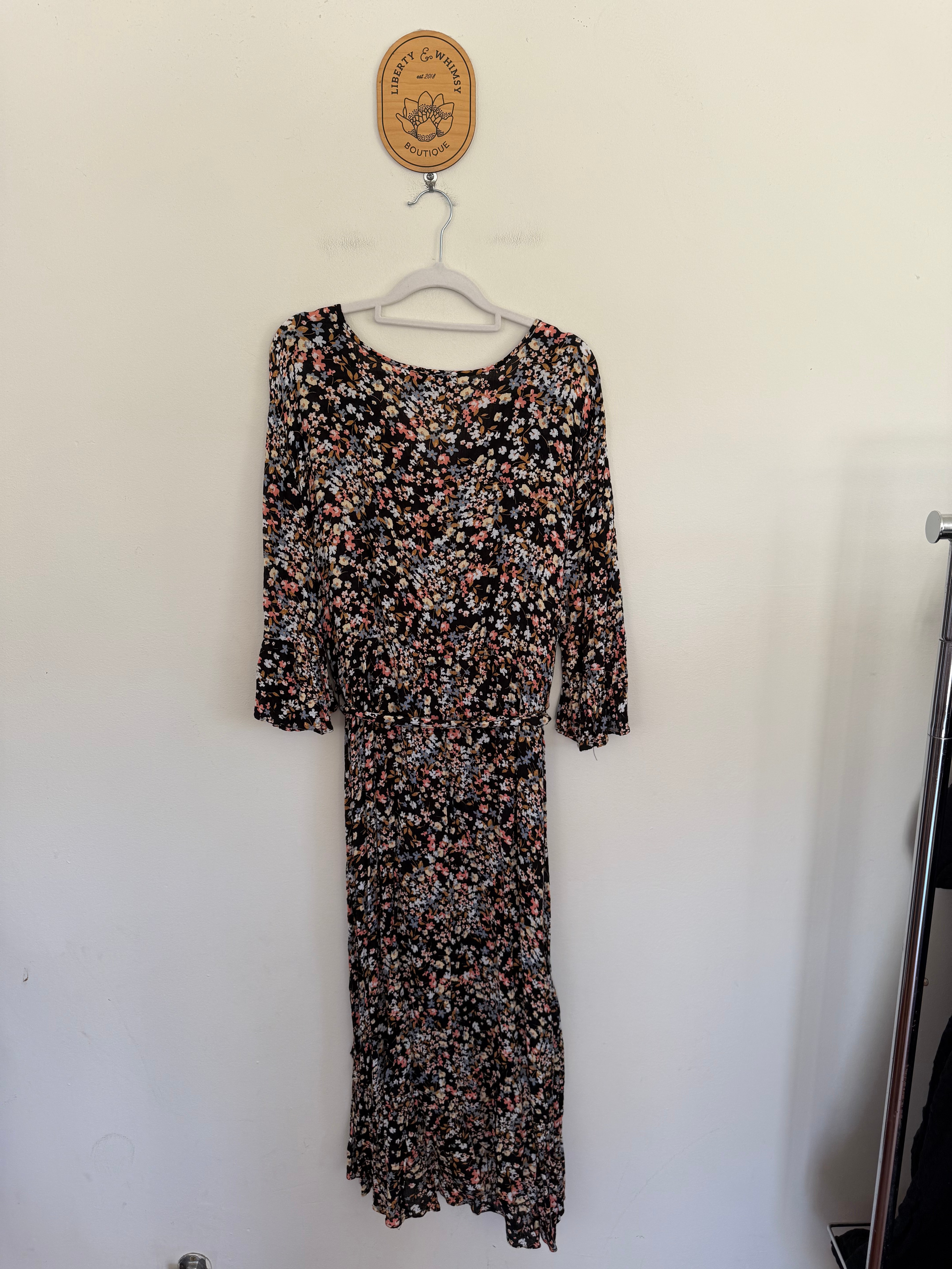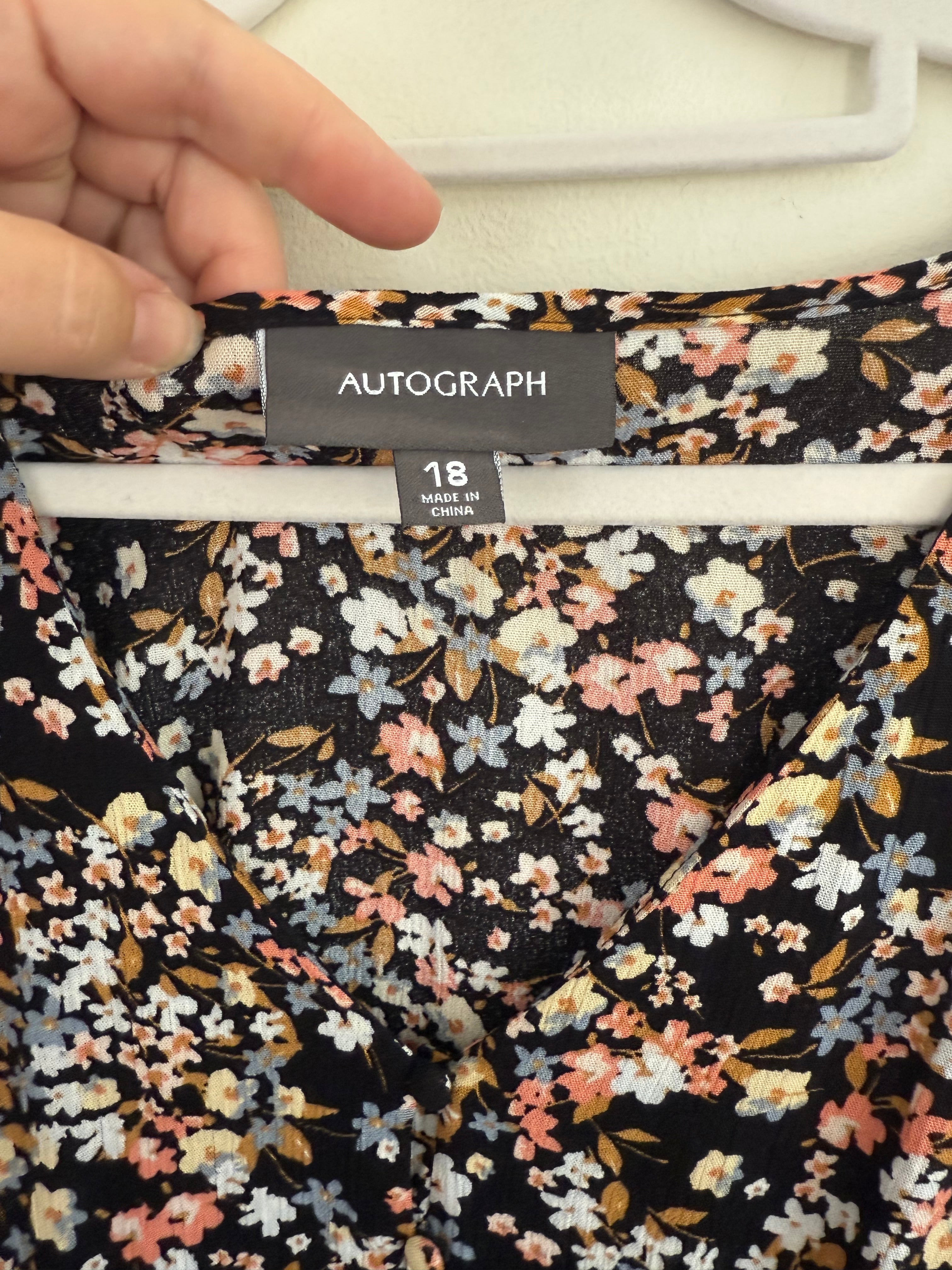 Autograph black ditsy floral hi-lo dress Sz 18 as new