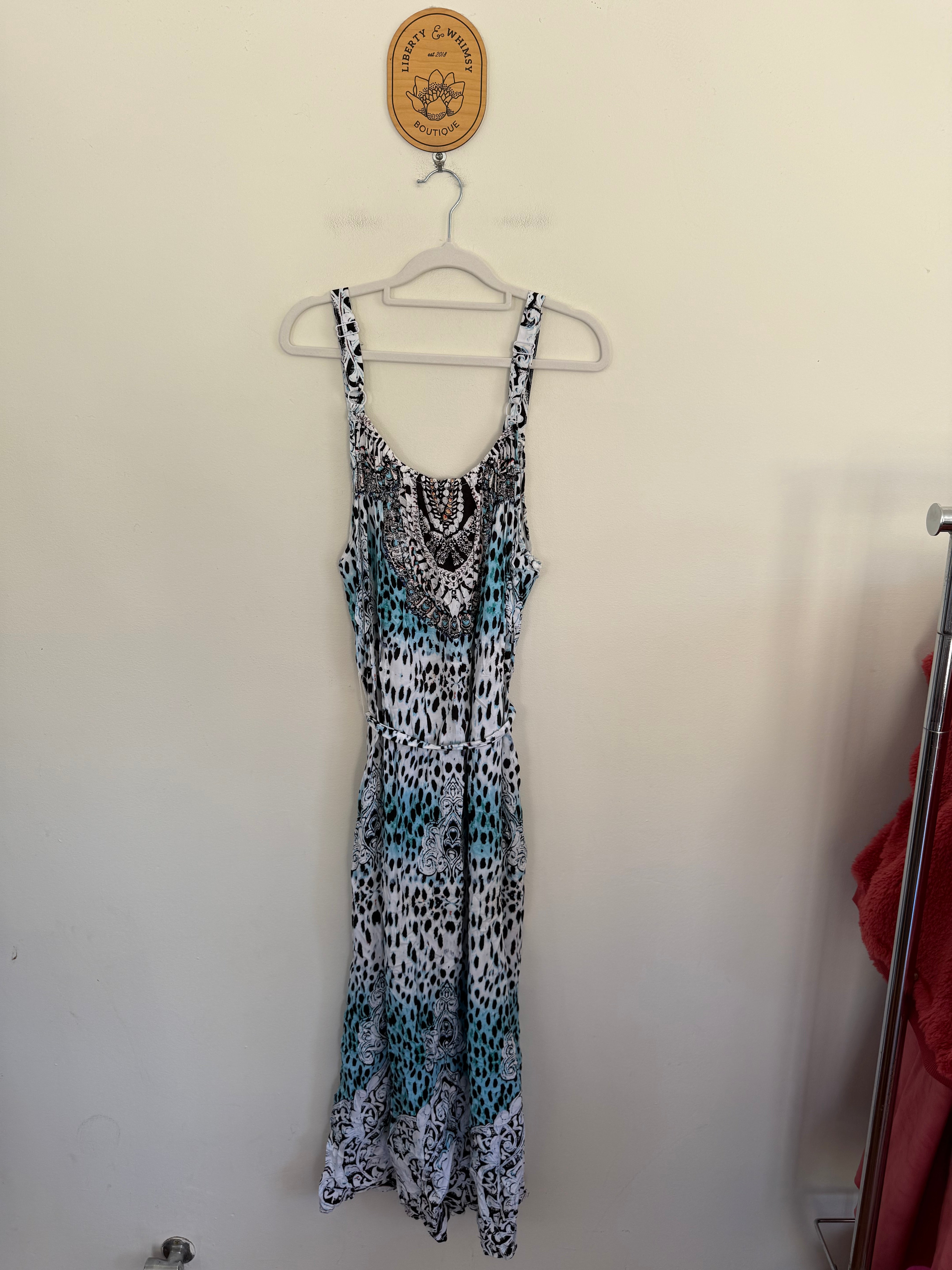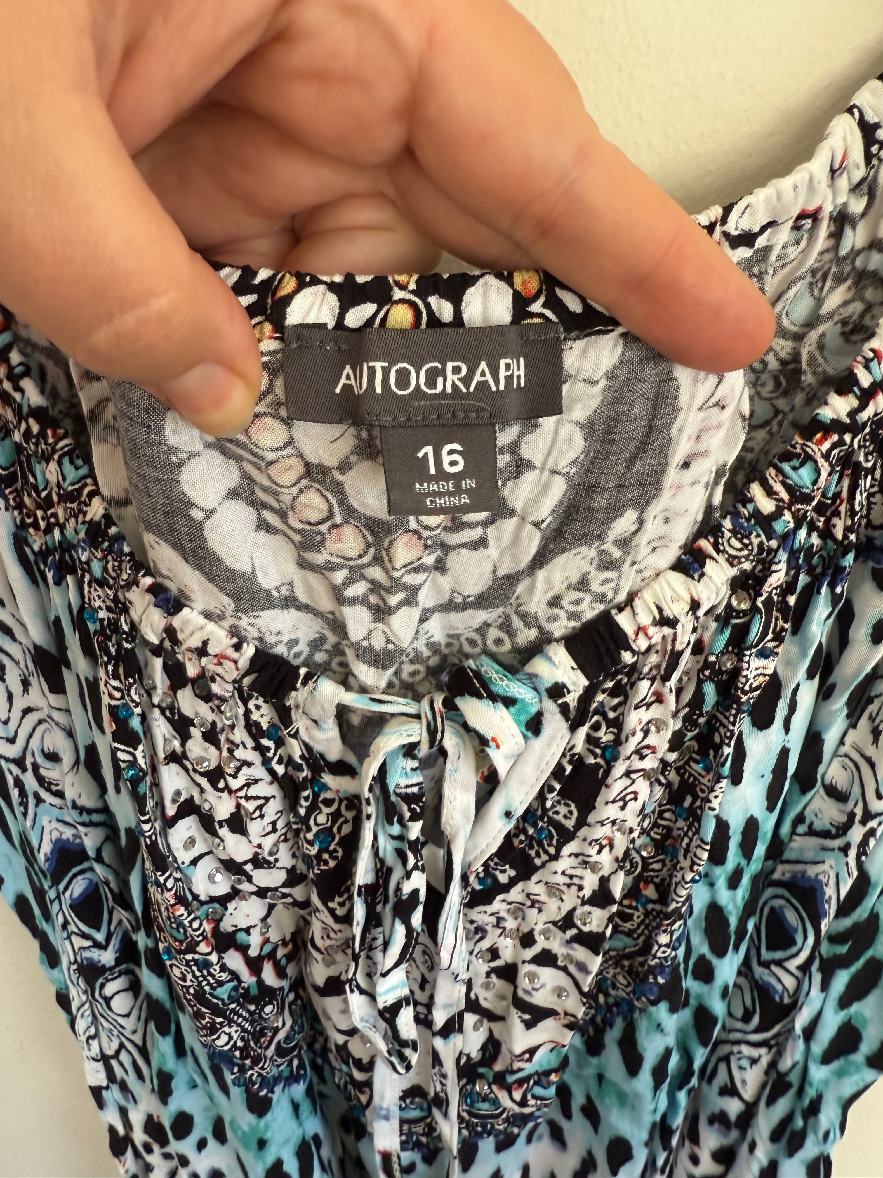 Autograph blue/white animal print diamanté dress Sz 16 EUC worn twice